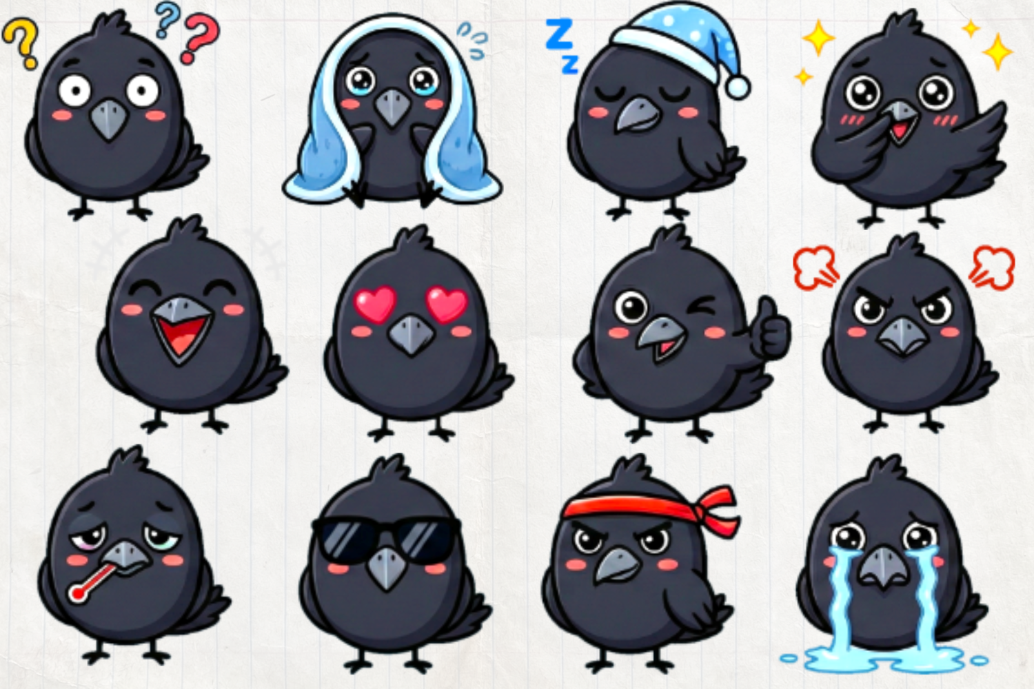 Crow Emote Pack – PNG Set for Twitch, Discord & Streamers